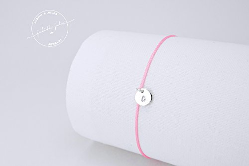 IDA BESCHREIBUNG Sehr zierliche, handgemachtes Armband mit einem gravierten Plättchen aus 925 Sterling Silber. Der Anhänger ist glänzend poliert. Das Band ist aus strapazierfähigem Nylon, robust und reißfest und unterschiedlichen Längen erhältlich. Durch den flexiblen Verschluss lassen sich die Größen, je nach Armumfang, verstellen. Leider können wir aktuell keine Gravuren anbieten! BITTE WÄHLEN SIE BEI DER BESTELLUNG : - IHRE GEWÜNSCHTE LÄNGE (BABY: 17 CM, STANDARD: 22 CM, GROß: 25 CM) - IHRE GEWÜNSCHTE FARBE - UND IHREN GEWÜNSCHTEN BUCHSTABEN. DETAILS Material : 925 Sterling Silber, Nylonband Längen : 17 cm, 22 cm, 25 cm Anhänger : ø 6 mm KOMBINATIONEN Die zarten Armbänder lassen sich besonders schön miteinander kombinieren und sammeln. Ob mehrere Anhänger auf einem Band oder mehrere Bänder übereinander getragen. Verschiedene Bandfarben machen deinen Look besonders einzigartig. Auf Bild 5 trägt das Model eine Kombination aus IDA und HONOR. PFLEGE Wir empfehlen das Nylonband alle 3-6 Monate austauschen zu lassen um gröbere Abnutzungen zu vermeiden. Dabei können Sie sich gleich eine neue, frische Farbe aussuchen. Um möglichst lange Freude an Ihrem Schmuckstück zu haben empfehlen wir folgende Pflegeanleitung: http://www.judithjules.com/content/14-pflege FRAGE ZUM PRODUKT Haben Sie eine genaue Vorstellung Ihres Wunscharmkettchens und Sie haben es in unserem Sortiment nicht entdecken können? Dann schreiben Sie uns. Wir fertigen auch nach Ihren individuellen Wünschen. BITTE BEACHTEN SIE, DASS SIE MIT DEM KAUF AUSSCHLIESSLICH DEN ARTIKEL IDA ERWERBEN.