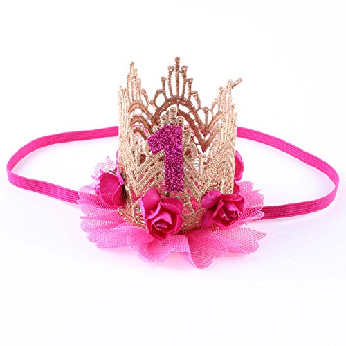 bieten Vococal® Babymädchen 1 Jahr Alt Kronen Blumen Spitzen Stirnband Haarband Babyschmuck Geburtstag Haar Accessoires, Rose Rot