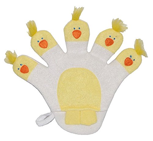 bieten 2 in 1: Waschhandschuh + Handpuppe 5 Finger Ente für Kinder - Handspielpuppe Frottee Tier Baby Waschlappen