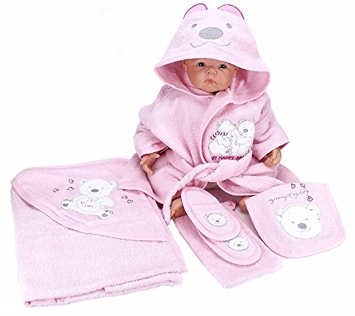 Baby Bademantel TeddyMe mit Badetuch Schuhe Waschlappen und Lätzchen 5-teilig Material 100% Baumwolle
