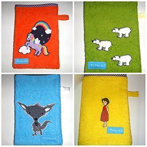 Schreibt beim Kauf einfach dazu welche Farbe und welches Motiv und wieviele Waschhandschuhe ihr wünscht:-)
