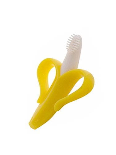 die ansprechende Zahnbürste in Bananenform dient auch als Beißring und kann zur Schmerzlinderung im Kühlschrank runtergekühlt werden. Ihr Kind wird das als sehr angenehm empfinden.